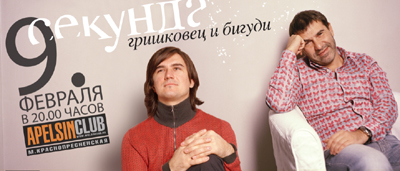 9 февраля Евгений Гришковец и группа «Бигуди» представят публике свой новый альбом -– «Секунда». Произойдет это в клубе «Апельсин».