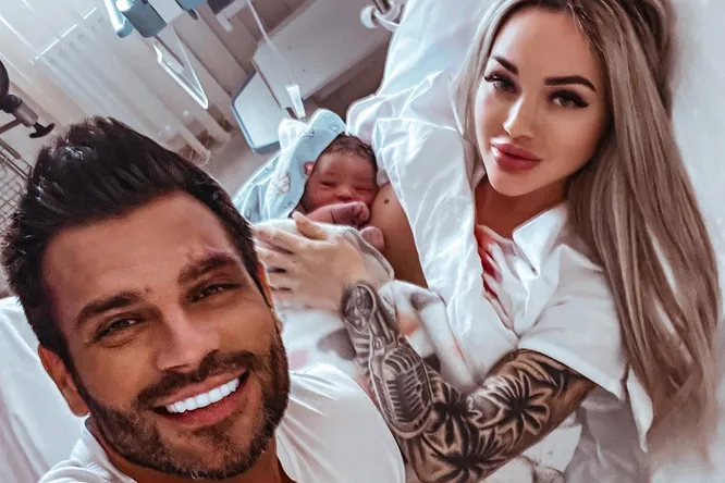 Популярная девушка показала два снимка, сделанные в роддоме. Молодая мама снялась на кровати, малыш лежал на ее груди. Возле них позировал с широкой улыбкой муж теледивы. Фитнес-блогер рассекретила имя сына.