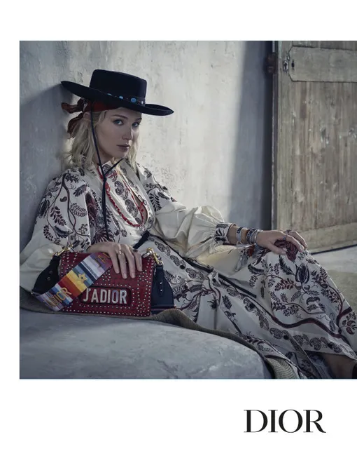Мария Грация Кьюри представила актрису в образе современной Скарлетт О’Хары из романа «Унесенные ветром». Ковбойская шляпа, массивные ботинки, обилие аксессуаров и платья с этническими узорами – образы Дженнифер так и хочется повторить!