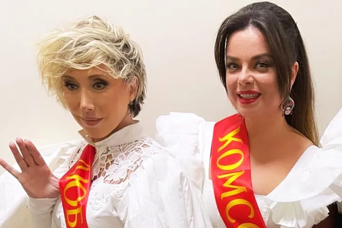 Организаторы концерта доверили им советский шлягер, который стал культовым в судьбе популярного певца – «Любовь, комсомол и весна». Для номера артистки выбрали подходящие контрастные образы – белый верх и черный низ. Эффектные блузки с рюшами и воланами они сочетали с брюками и туфлями на каблуках. Наташа, которая обычно предпочитает наряды «с перчинкой», разбавила свой пуританский вид глубоким вырезом в зоне декольте. Она также выбрала вместо классических лодочек туфли с кокетливым пушком.