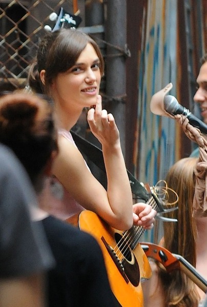 Только взгляни на эту хулиганку! Во время исполнения песни под гитару в Нью-Йорке, Кира Найтли жестом выразила свое отношение к снимавшему ее фотографу. Кира знает, что такое настоящий рок-н-ролл!