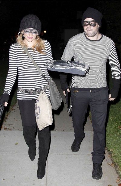 Хилари Дафф и ее муж Майк Комри решили переодеться в грабителей в честь праздника. Но романтичную певицу и актрису Хилари ничуть не испортил негативный образ выбранной героини. Хилари улыбается и торопится поделиться с другими большим пирогом. Возможно, на девушку так влияет ее беременность?