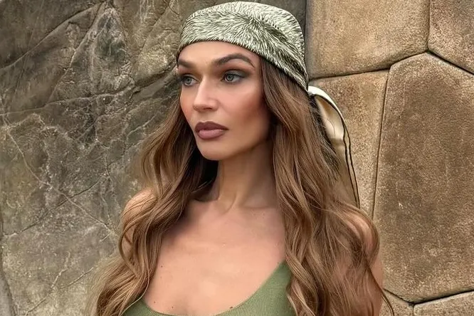 Алена выбрала смелое облегающее платье приглушенного оливкового оттенка. Звезда отказалась от бюстгальтера. Облегающий наряд подчеркнул ее пышную грудь. Она дополнила образ плетеной сумкой, украшенной шелковым платком. На голове у Водонаевой тоже красовался похожий платок.