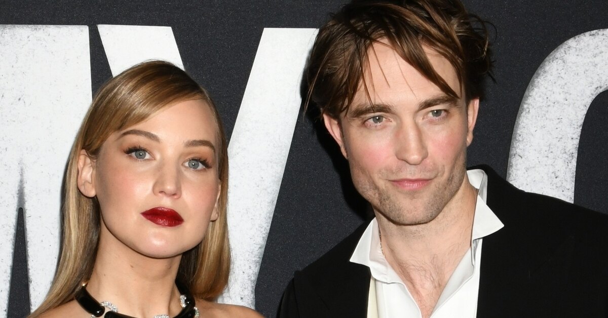 Дженнифер Лоуренс в платье с декольте и высоким разрезом вышла в свет вместе с Робертом Паттинсоном