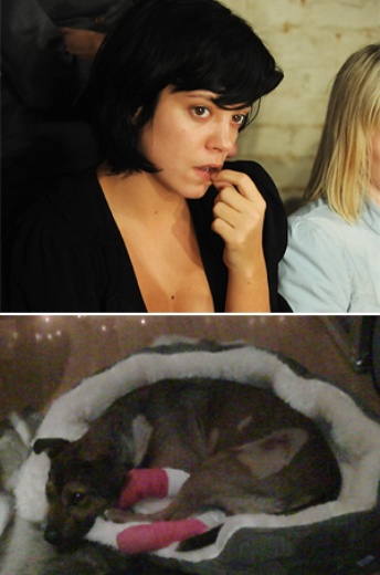 Популярная британская певица разместила в своем блоге на сайте Twitter фотографию израненной собачки по кличке Мэйбл. Бедное животное лежит в своей корзинке, и мы можем увидеть, что у собаки перевязаны лапы. Оказывается, Мэйбл подверглась нападению.