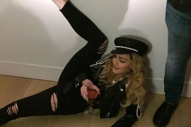 Как рассказали очевидцы, Мадонна пришла на модную выставку уже после нескольких коктейлей, она начала любоваться своим портретом. После произошло то, от чего гости вечера были в шоке. Певица легла на пол прямо под своей фотографией и начала принимать эксцентричные позы перед объективами камер. Она поднимала ноги и смеялась.