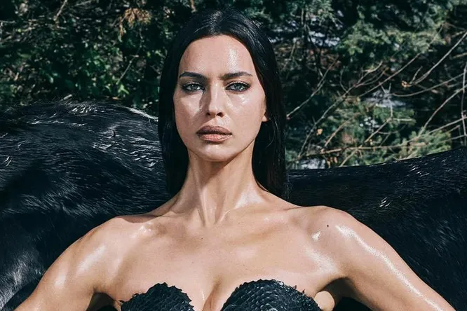 Для Ирины Шейк фотограф выбрал провокационную тему. Топ-модель позировала в кожаной куртке со спущенными трусиками на байке на фоне стены и коровы. Ее также запечатлели топлес в стрингах рядом с черным жеребцом. Звезда глянцев примерила кожаный корсет под змеиную кожу с открытыми плечами и откровенной зоной декольте в форме сердца. Минималистичный образ total black дополнили трусики и кожаные сапоги-чулки.