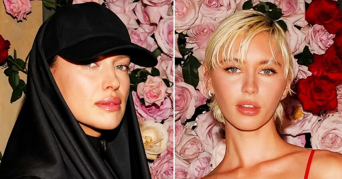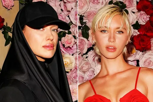 Компанию им составила бейсболка с атласной вуалью, струящейся по плечам. Аутфит завершили босоножки из черной лаковой кожи на шпильке, которые визуально удлинили загорелые ноги 39-летней российской топ-модели. Ирине сделали неброский макияж, подчеркнувший ее естественную красоту. Визажист использовал тушь для ресниц, тонкий слой карандаша, персиковые румяна и нюдовую помаду для губ. Шейк отказалась от украшений и дополнительных аксессуаров в пользу аутентичности монохромного образа.