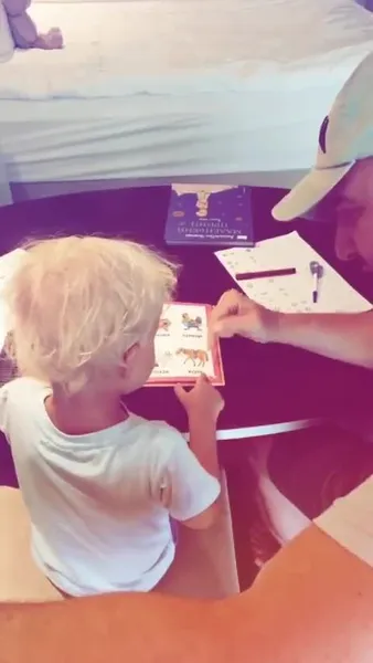 На отдыхе Виторган не забывает заниматься образованием сына. Актер показал, как помогает Платону учиться читать.