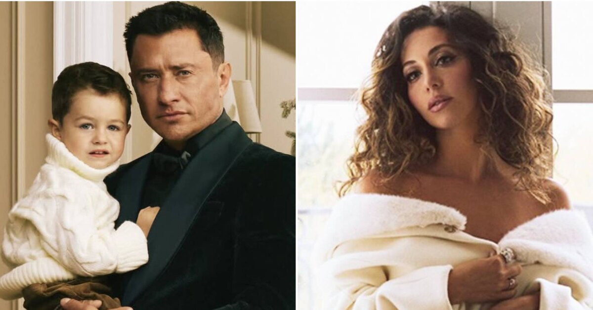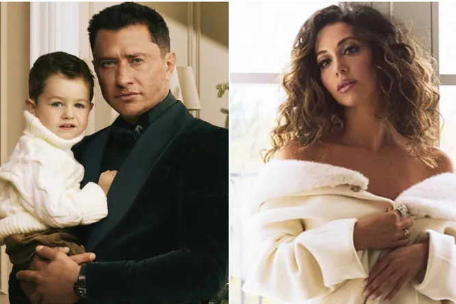 На одном снимке артист стоял и прямо смотрел в объектив. При этом он держал на руках двухлетнего сына. На втором фото Прилучный сидел в кресле, а Микаэль стоял рядом с ним. Они с улыбками смотрели в глаза друг другу.