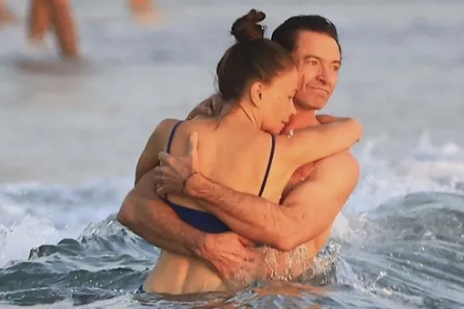 Хью Джекмана в объятиях новой возлюбленной на пляже подловили папарацци