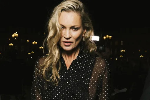 Звезда подиумов принимает участие в мероприятиях в рамках Недели моды в Париже. Накануне Кейт Мосс посетила показ Tom Ford осень/зима-2026. Она отказалась от бюстье, засветив грудь в черной прозрачной блузке с контрастным принтом в белый горох. Вызывающе смотрелась и юбка-сетка в тон длиной миди с латексными вставками.
