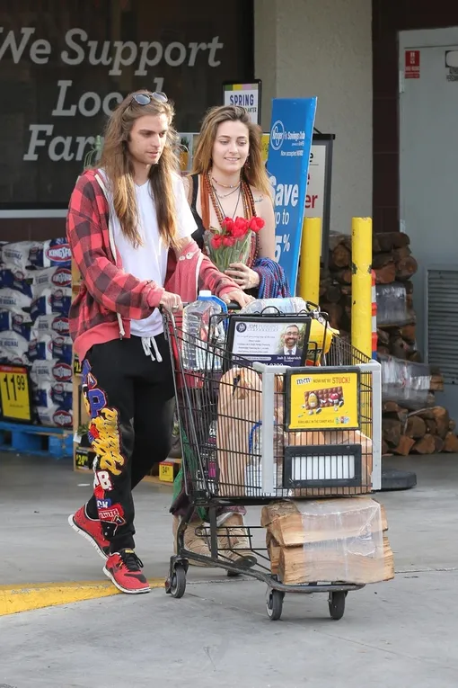 Гэбриэл вез тележку с покупками для барбекю, а Пэрис, улыбаясь, шла рядом. Она держала букет красных тюльпанов. Дочь Майкла Джексона была в комбинезоне этнического стиля.
