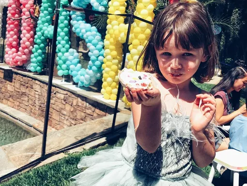 Праздник начался со школьной вечеринки, на которой Даша, как ее ласково называют домочадцы, с детской непосредственностью радуется угощениям. «Это так забавно, потому что это русская школа для детей дошкольного возраста. Снимки выглядят как будто прямо из советской эпохи. Но счастье Даши поразительно, верно?» - поделилась Мила.