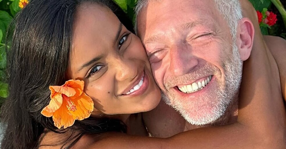 Брюнетка распустила волосы и позировала в цветастом раздельном купальнике. Она крепко обнимала за шею артиста, который оголил торс. Венсан и Нара широко улыбались, глядя в объектив камеры.