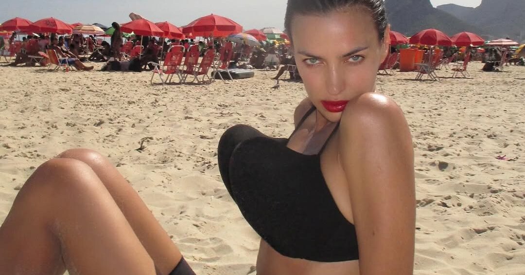 Теперь бывшая возлюбленная Брэдли Купера отдыхает на местных пляжах. Ирина опубликовала фото, где она расположилась на песке в необычном купальнике и узких черных велошортах. Лиф купальника сразу привлек внимание. Чашечки бюстгальтера были необычной формы — они выпирали, визуально увеличивая грудь топ-модели. Она позировала в профиль, сидя на песке. Сзади нее возвышались красные тенты от солнца.