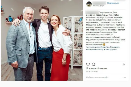 В честь 14-летия сына Валерий и Альбина устроили праздник. Один из снимков с торжества появился в Сети. Его обнародовали организаторы вечеринки. В кадре Константин вместе с родителями. Юноша заметно повзрослел и возмужал, Костя уже стал выше отца.