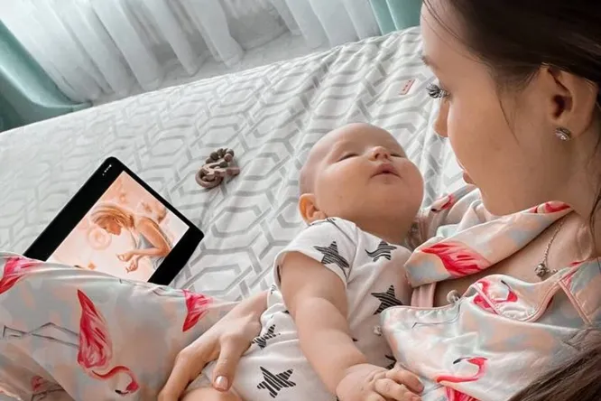 Анастасия в стильной шелковой кремовой пижаме с нарисованными розовыми фламинго легла на кровать. Звезда подиумов забрала волосы в хвост и предстала без макияжа. Молодая мама одела Алексея в светлый комбинезон с большими звездами. Ноги ребенка она заботливо укутала в носочки. Жена футболиста взяла на руки малыша и укачала его.