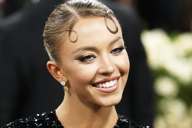 Сидни Суини в сверкающем платье с рискованным вырезом в зоне декольте украсила дорожку Met Gala