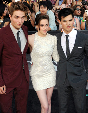 Третий фильм серии «Сумерки: Затмение», которая только что вышла в прокат, демонстрирует, что Роберт в роли вампира Эдварда Каллена, Кристина в роли его девушки Беллы Свон и Тейлор в роли оборотня Джейкоба Блэка не изменяют своим ролям.