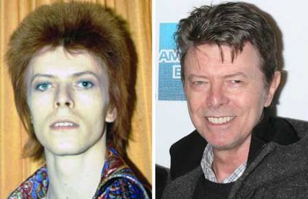 Перед вами две фотографии знаменитого исполнителя. Первая была сделана в 1973 году, когда Дэвиду было всего 26 лет. А вторая совсем недавно — в 2009. Легенде мировой рок-музыки уже 62. Как говорится, найди девять отличий.