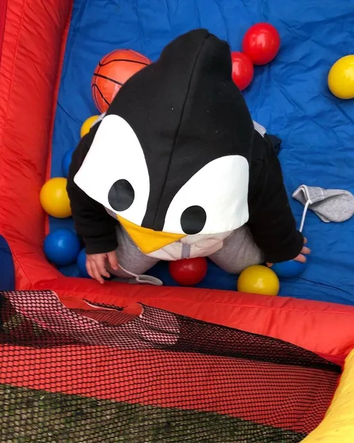 Недавно Мария впервые показала подписчикам своего девятимесячного ребенка. На снимке мальчик в костюме пингвина играет с игрушками в манеже.
