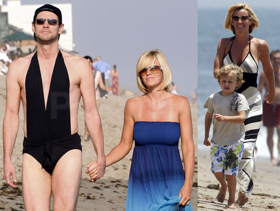 Джим Кэрри и Дженни МакКартни вновь поразили публику своим эксцентричным чувством юмора. Для прогулки по пляжу в Малибу Дженни выбрала сексуальный черный купальник, но надела его вовсе не она сама...