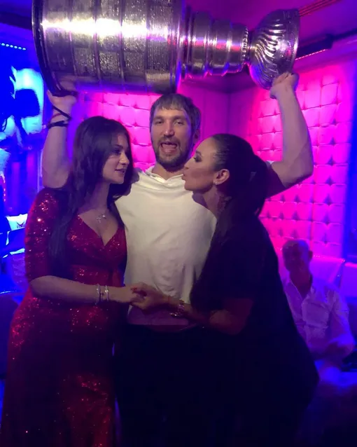 Анастасия и Александр собрали друзей в караоке-клубе по двойному поводу: год назад пара сыграла свадьбу, а хоккеист привез с собой на родину Кубок Стэнли!