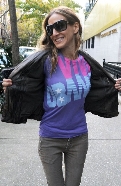 Сара Джессика Паркер надела специальную майку по случаю победы Барака Обамы на выборах.