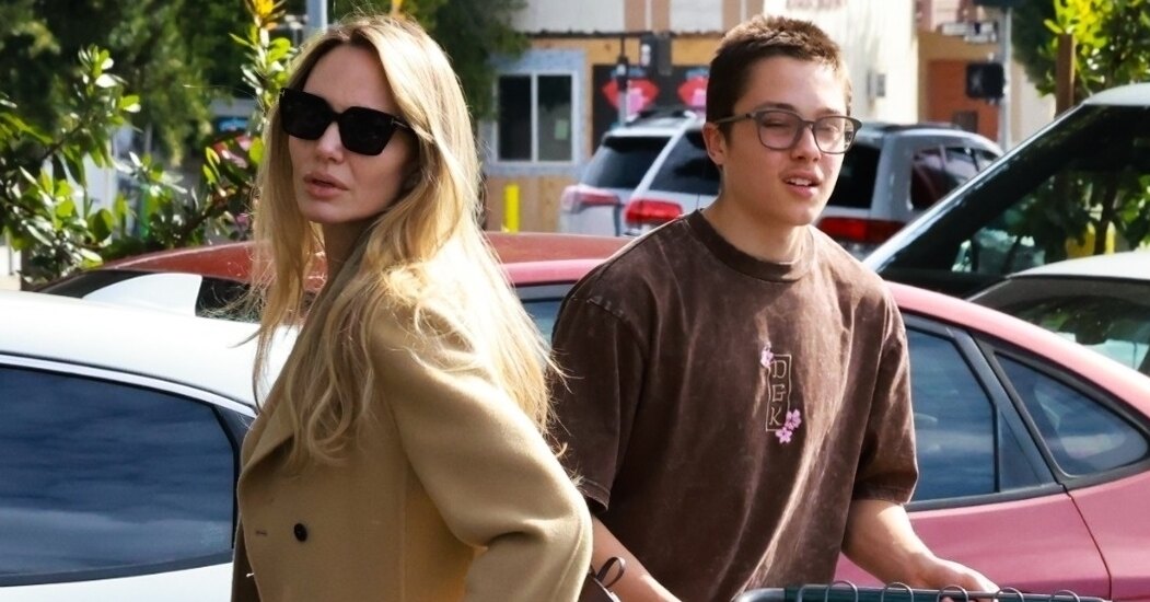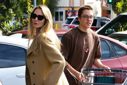 Анджелина оставила волосы распущенными, а в качестве аксессуаров выбрала солнцезащитные очки. Сын артистки сделал ставку на кэжуал. Нокс надел коричневую футболку и штаны со светлыми кроссовками. Юноша вез тележку с покупками, помогая маме.