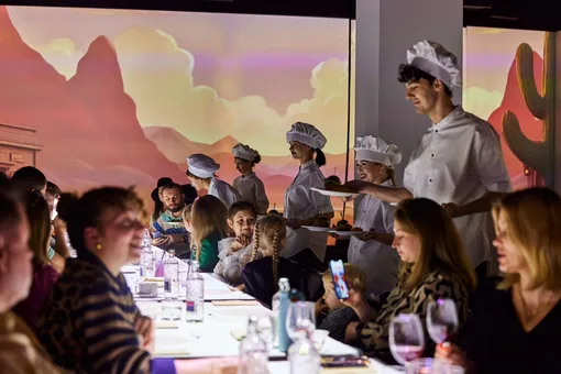 Все гости отправляются в захватывающее гастрономическое путешествие: от бескрайних просторов Дикого Запада до ласковых берегов Италии. Шоу не только расширяет кругозор, но и погружает в иммерсивную атмосферу, пробуждая воображение и любопытство!