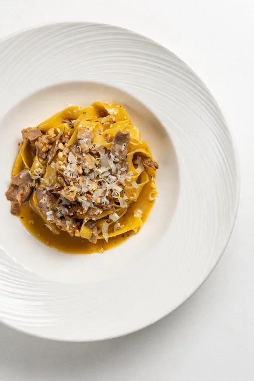 - Паппарделле с утиным рагу, травами, пармезаном и кедровыми орешками – 2300 ₽