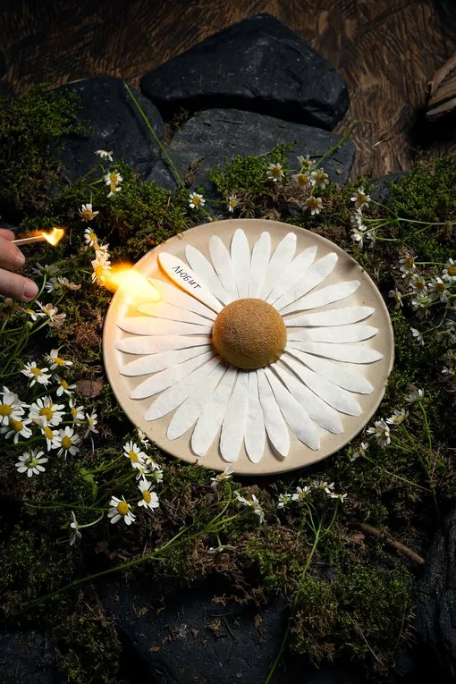 Гадание на ромашке – как праздничный перфоманс и самый эффектный десерт. На каждом лепестке главный вопрос: «Любит?» или «Не любит?». Лепестки сгорают один за другим, пока не останется последний – с единственным ответом, который каждый хочет услышать.