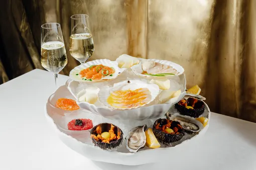 Начать романтический ужин предлагаем с классического праздничного блюда – свежайших устриц, дополненных черной икрой. Идеальной парой к нему станет бокал ледяного шампанского из обширной библиотеки с выдающимися этикетками.