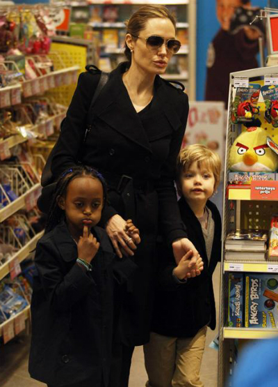 Анджелина Джоли зашла в супермаркет вместе с детьми.