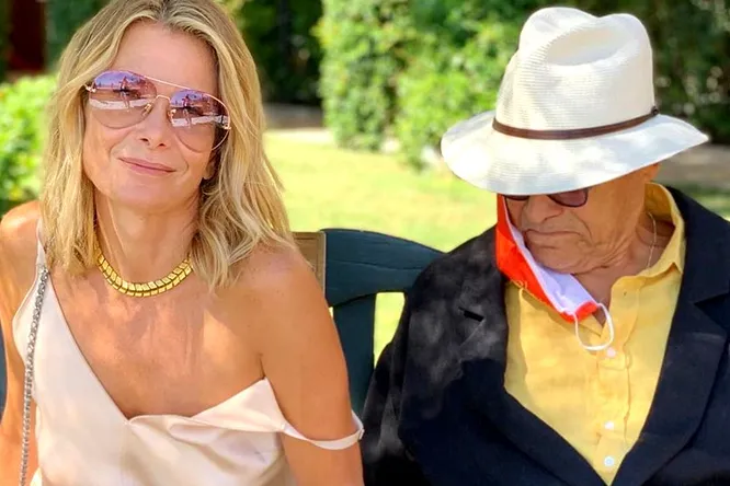 Кончаловский сделал ставку на удобство. Он надел рубашку, льняные брюки и пиджак и шляпу. Кинематографист приспустил защитную маску с лица, на котором красовались солнцезащитные очки. Внимание Андрея Сергеевича было сконцентрировано на возлюбленной. Та кокетливо приспустила бретельку, обнажив плечо. Супруги нежно держались за руки и задорно смеялись.