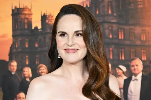 Из украшений исполнительница роли леди Мэри Кроули в популярной саге надела свисающие серьги с бриллиантами и несколько колец. Ей сделали макияж с эффектом smoky easy и коралловой помадой для губ. Темные волосы актрисы уложили вьющимися локонами, свободно струившимися по спине.