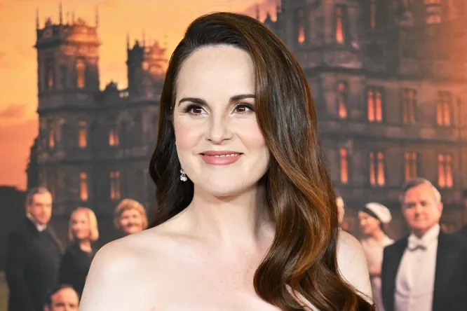 Мишель тепло приветствовала своих коллег по съемочной площадке, она обняла свою экранную мать Элизабет Макговер, которая играет Кору, графиню Грэнтэм. 64-летняя актриса надела платье с алым лифом и оранжевой юбкой с неоновым блеском, расшитое пайетками.