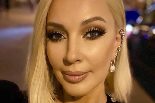 Верхнюю часть наряда украсили сверкающие стразы. Кудрявцева дополнила образ массивным украшением — серьгой с бриллиантами и жемчугом. Она завершила ансамбль серебристыми лодочками на высоких каблуках.