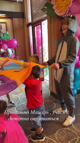 Один из конкурсов получился особенно забавным: Маше нужно было успеть ударить воздушным шариком детей, которые внезапно появлялись рядом с ней. «Правильно, Машуль, учись с детства отбиваться», — прокомментировала Лера.