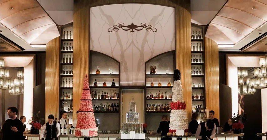 И сам вечер премьеры прошел под знаком танго. За его оформление и меню отвечал Иван Дубков, основатель художественной студии Applied Ingredients. Камерное, роскошное пространство гранд-лобби и бара «Шаляпин» напоминало уютное кабаре с приглушенным светом. У бар- ной стойки возвышалась специально созданная концепт-шефом ин- сталляция из овощей, фруктов, льда, символизирующая союз женского и мужского начала. Среди гастрономических закусок значились устри- цы, улитки по-бургундски, артишоки по-андалузски, сыр «баттистелла», выдержанный на шампанском. Закуски идеально дополняли совиньон блан и мерло от российского бутикового винодельческого проекта LeGato.