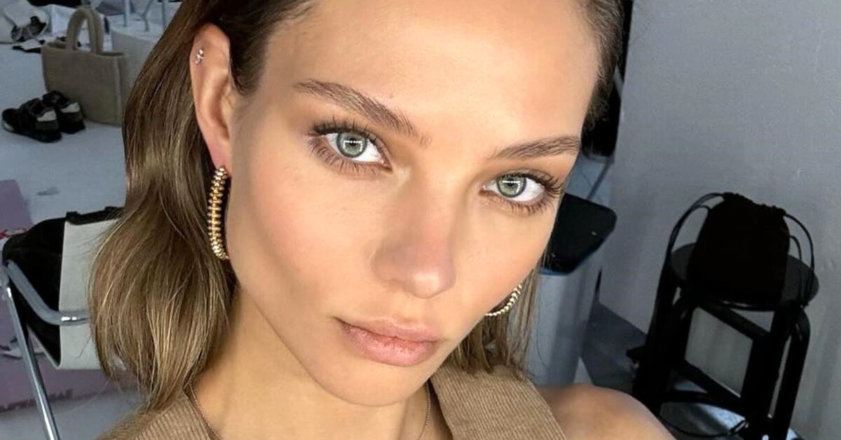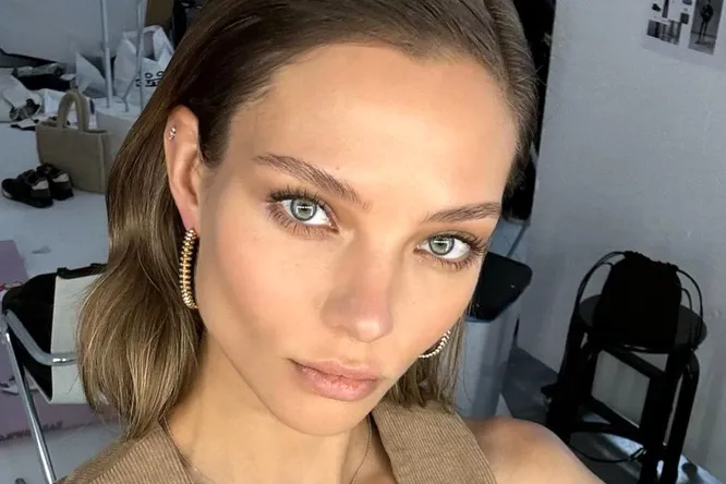 Дочь модели Марии Тишковой и теннисиста Евгения Кафельникова продемонстрировала на подиуме два образа. Сначала Алеся предстала перед публикой в темно-синем костюме – куртке с накладными кармами и брюках широкого кроя. Аутфит дополнила ярко-красная сумочка, которую девушка несла подмышкой. Длинные волосы звезды остались распущенными, а на лице практически отсутствовал макияж.