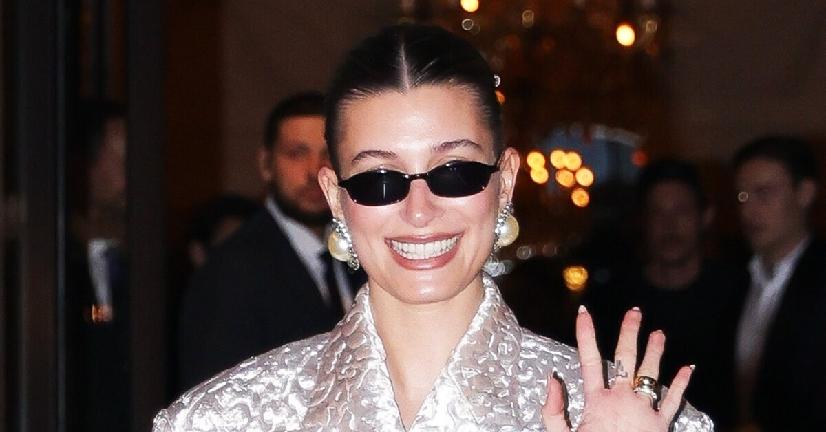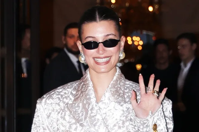 Хейли Бибер в серебристом мини появилась на Неделе моды в Париже