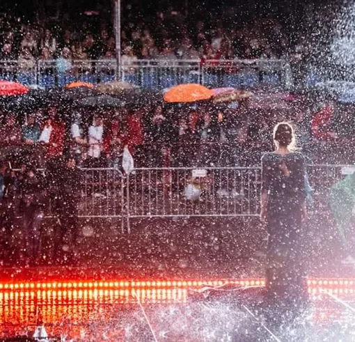 41-летняя Екатерина Климова показала снимки с концерта. Как видно по кадрам, во время ливня люди стояли под зонтами во время концерта.