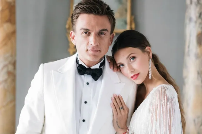 Регина опубликовала нежную свадебную фотосессию с мужем. Первое фото получилось очень нежным, а второе выглядело более строгим. Снимки были сделаны для журнала OK!.