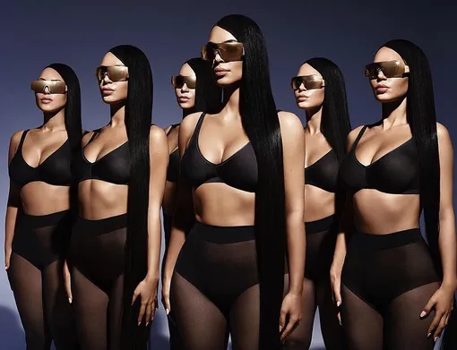 Ким Кардашьян в бра и колготках представила с клонами новый проект