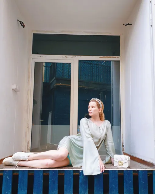 Монеточка опубликовала снимок, на котором она позирует в нюдовом платье и белых кроссовках на фоне живописной стены. Исполнительница призналась, что она уехала в «глушь мира», чтобы писать песни.