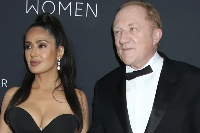 Сальма Хайек в платье с глубоким декольте в форме сердца появилась с мужем на гала-вечере