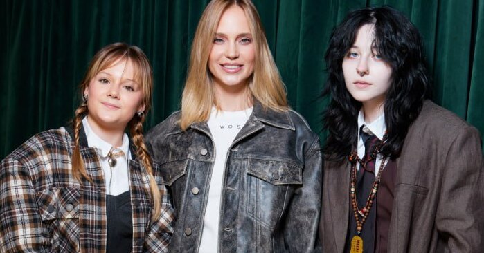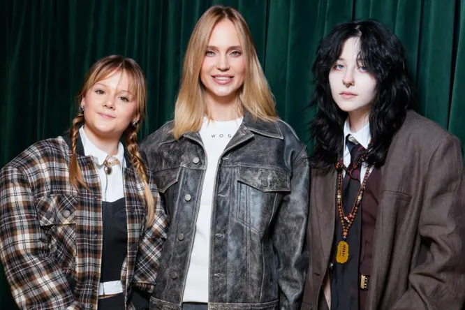 Младшая дочь звезды, 12-летняя Вера, составила необычный look: она дополнила мини-юбку колготками в мелкую сетку. Старшая дочь актрисы, 16-летняя Лида, выбрала любимый оверсайз.