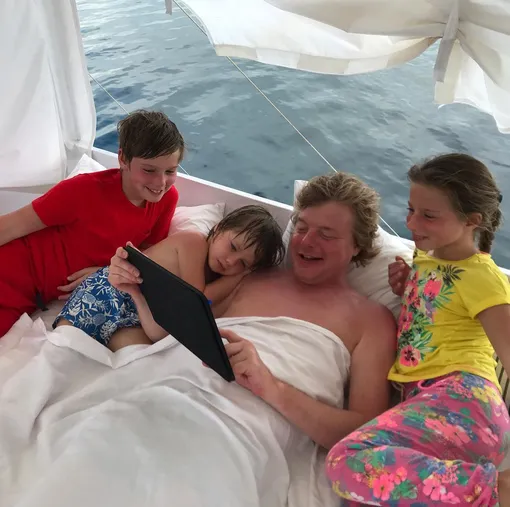 Юлия с детьми отправилась посмотреть и храм, расположенный на воде. Туда туристы добирались на судне, на котором они встретили Андрея Григорьева-Апполонова!
